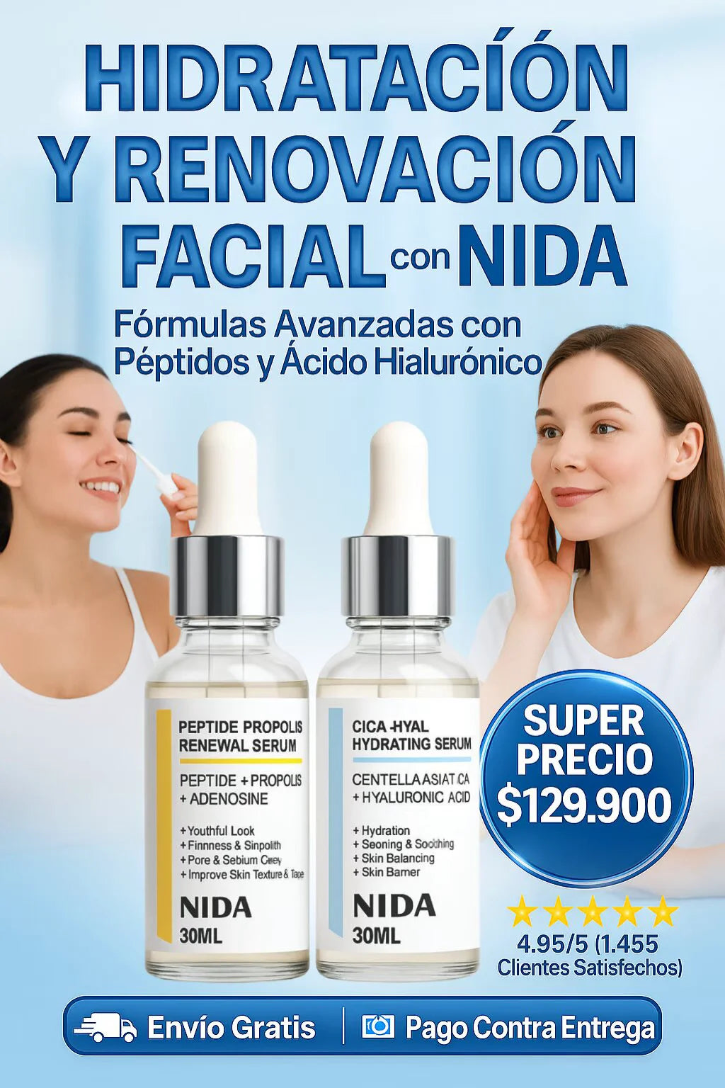 SET NIDA PEPTIDE SERUM 30ML+CICA SERUM 30ML | Piel luminosa, firme y joven todos los días ✨