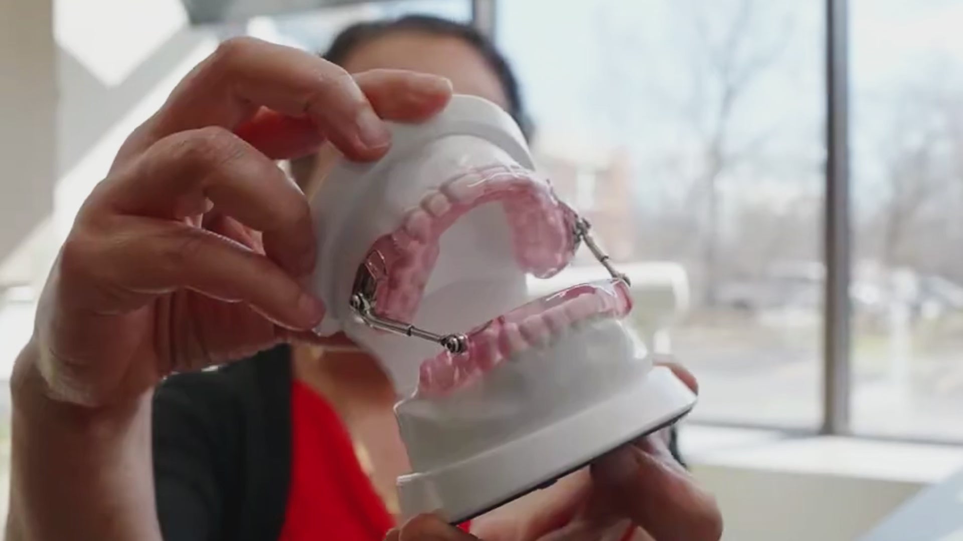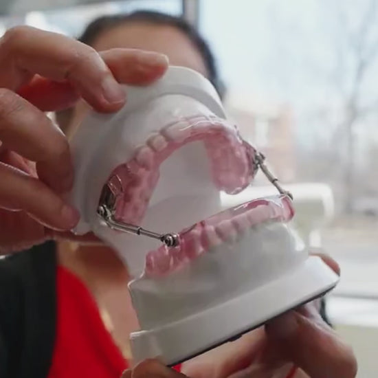 Este dispositivo realiza una alineación precisa de tu mandíbula, manteniéndola ligeramente adelantada.